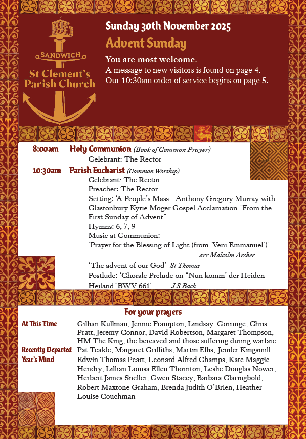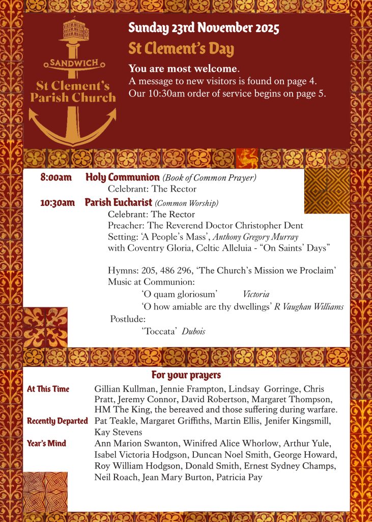 Today we are a community living out an ancient faith in the contemporary world. We gather regularly to worship, to learn about God, and to share fellowship with one another. We are committed to discerning God’s will as we seek to serve Sandwich as the Parish Church, and the wider world as Christians of the twenty first century.