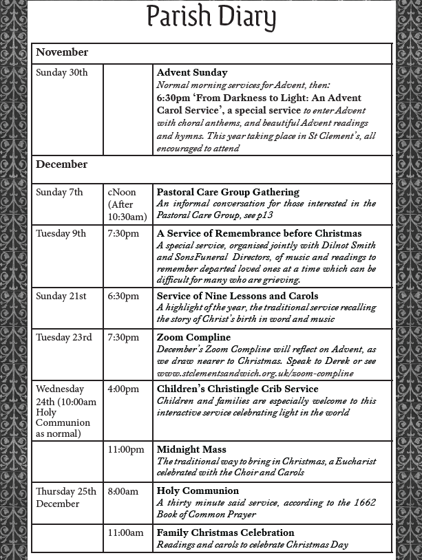 I hope you will come to visit us. All are welcome at our acts of worship, information on regular services can be found by clicking here, and outside of these services St Clement’s is open daily from 10:00am until 4:00pm (May-September) or 11:00am to 3:00pm (October-April).